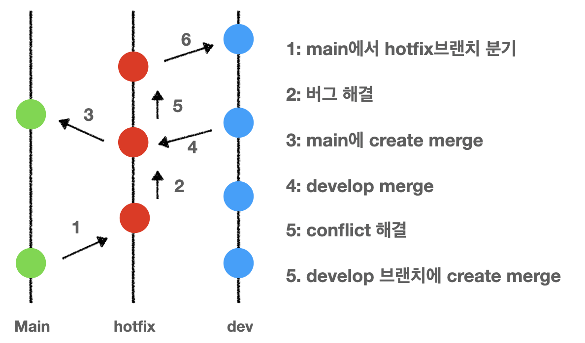 hotfix를 진행하는 branching 과정은 다음과 같다.