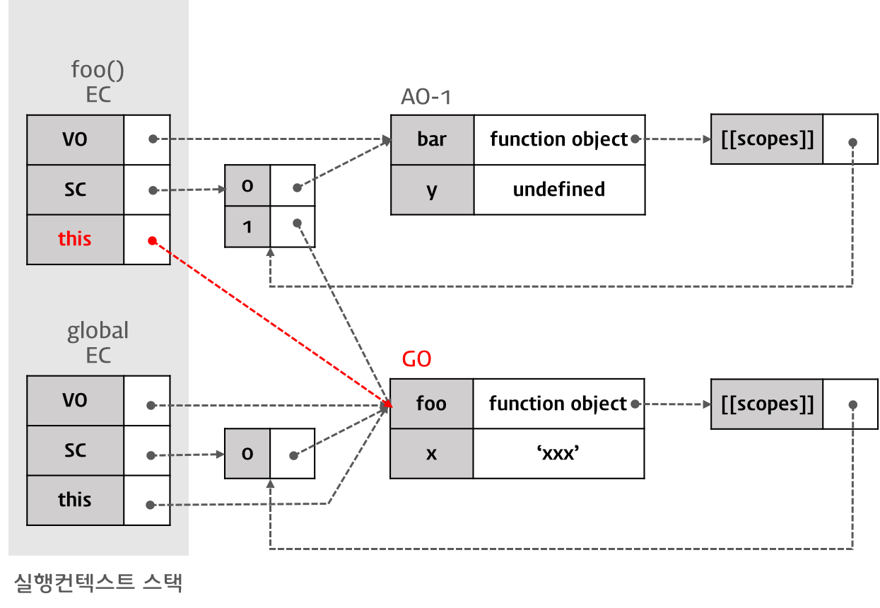 - 객체에 속한 메소드에서 사용될 때 this는 메소드가 속한 객체